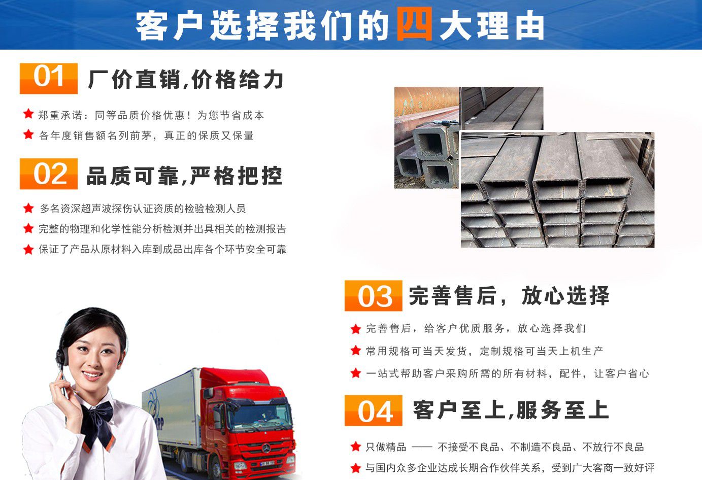 無錫盛灝特鋼有限公司長期銷售Q355B方矩管,鍍鋅方矩管,大口徑方矩管,厚壁方矩管,無縫方矩管等各種方管產(chǎn)品!產(chǎn)品廣泛應用于鋼結(jié)構(gòu)建筑(鋼管混凝土、管樁、管桁架,橋梁、海上作業(yè)平臺、港口碼頭建設、電視通訊鐵塔、電力鐵塔等鋼結(jié)構(gòu)管)。壓力管道(石油、天然氣、煤漿等輸送)、機械制輥等領域。  公司自創(chuàng)辦以來,一直堅持“誠信合作,共同發(fā)展”的經(jīng)營理念。  一直以來我們本著“以誠相待,以信為本,互利互惠,共同發(fā)展”的長期方針,充分發(fā)揮現(xiàn)貨資源優(yōu)勢為您提供“可靠的產(chǎn)品、過硬的質(zhì)量、完善的服務”,歡迎廣大新老客戶前來洽談業(yè)務。  公司以“至誠至信,雙利雙贏”為根本宗旨,堅持科技興企的發(fā)展策略,恪守商規(guī),創(chuàng)新進去,贏得聲譽,贏得了市場,得到了社會各階層的認可。公司以雄厚的實力、可靠的質(zhì)量、儲存鋼管門類齊全、庫存量大之優(yōu)勢,本著守法、守信、創(chuàng)新的理念,打造精品,發(fā)展鋼管多元化品種,滿足客戶各種需求,以低廉的價格、熱情的服務面向國內(nèi)外客戶,歡迎鋼管界同仁加盟!我們?yōu)榭蛻籼峁┲艿降姆?!  公司為客戶提供以下服務  服務三保: 保證質(zhì)量、保證時間、保證數(shù)量。  服務宗旨: 雄厚的實力、優(yōu)質(zhì)的產(chǎn)品、低廉的價格、周到的服務。  批零兼營,一支起定。...
